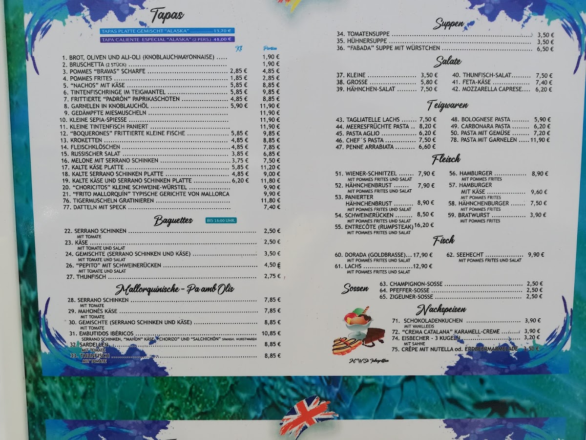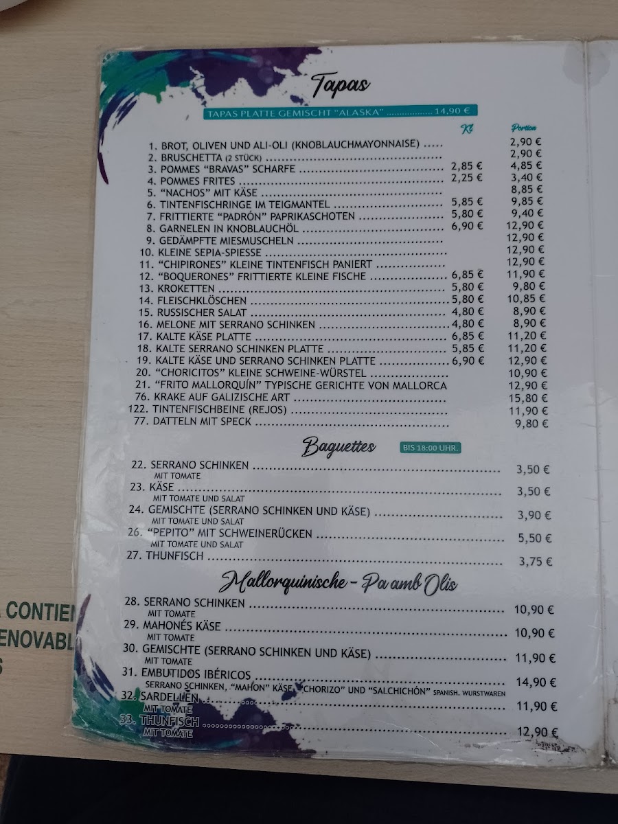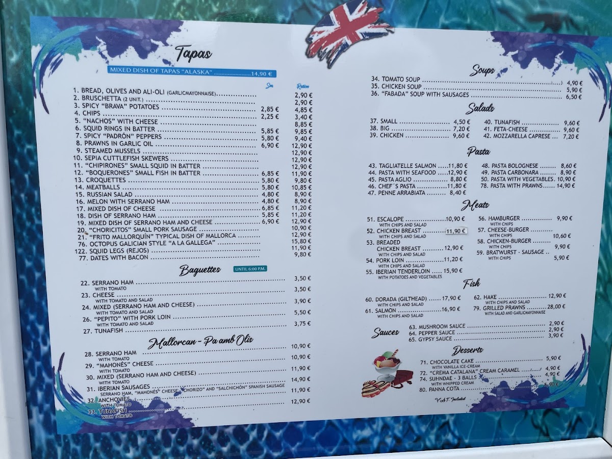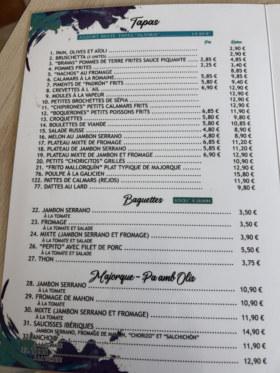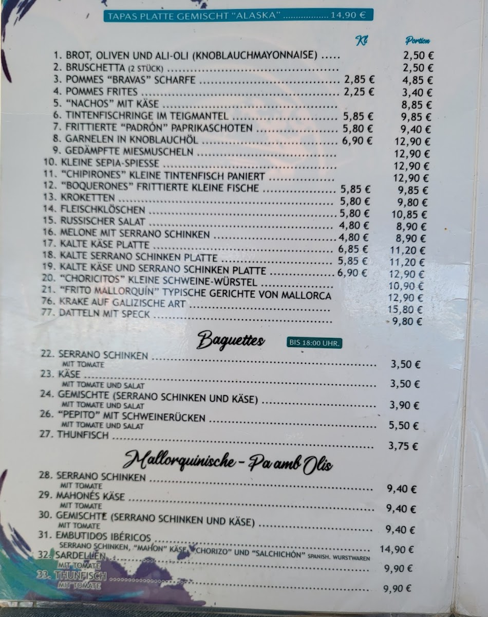 Tapas Bar Alaska Menu